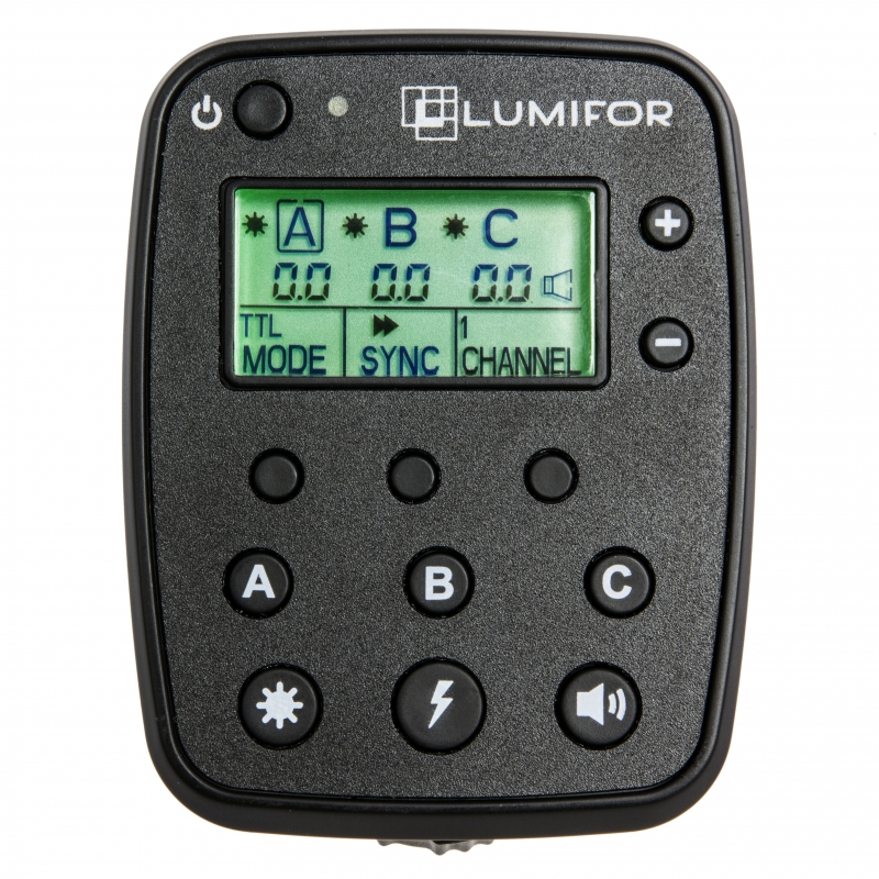 Радиосинхронизатор Lumifor LRT-V1 позволяет объединять осветительные приборы в три группы, содержащие до восьми единиц в каждой. Он значительно упрощает подготовку к съемке, помогая обходиться без ручной установки настроек для каждого устройства. Синхронизатор также может использоваться в качестве пульта дистанционного управления с функциями регулировки пилотного света, отключения звуковых сигналов и изменения мощности импульсной вспышки. Применение контактов типа «горячий башмак» и разъема РС делает его совместимым с большинством зеркальных камер.