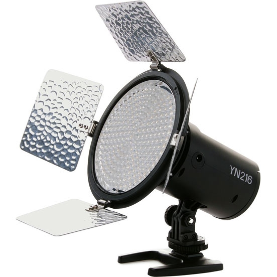 Осветитель Yongnuo YN-216 создан с применением 216 диодов высокой яркости. Он оснащен специальным диммером со встроенным трансформатором, который обеспечивает исключительно ровный световой поток и позволяет плавно менять уровень яркости. Стационарная установка. Устройство подходит для установки на камеры и стойки. При наличии сетевого адаптера оно может получать питание от обычной розетки.Портативное применение. Гаджет можно запитать от шести стандартных батареек АА либо от специального литий-ионного аккумулятора, что очень важно для работы за пределами студии. Полностью металлическое крепление «Горячий башмак» защищает его от падений и случайных поломок при наклоне камеры.Профессиональная настройка. Пользователь может менять направление светового потока благодаря шарнирному креплению осветителя, а также ограничивать его распространение с помощью специальных шторок. Для быстрой установки оптимальной цветовой температуры используются специальные светофильтры.Максимальная надежность. Светодиоды значительно превосходят традиционные лампы по надежности – время их наработки на отказ превышает 20 тысяч часов.